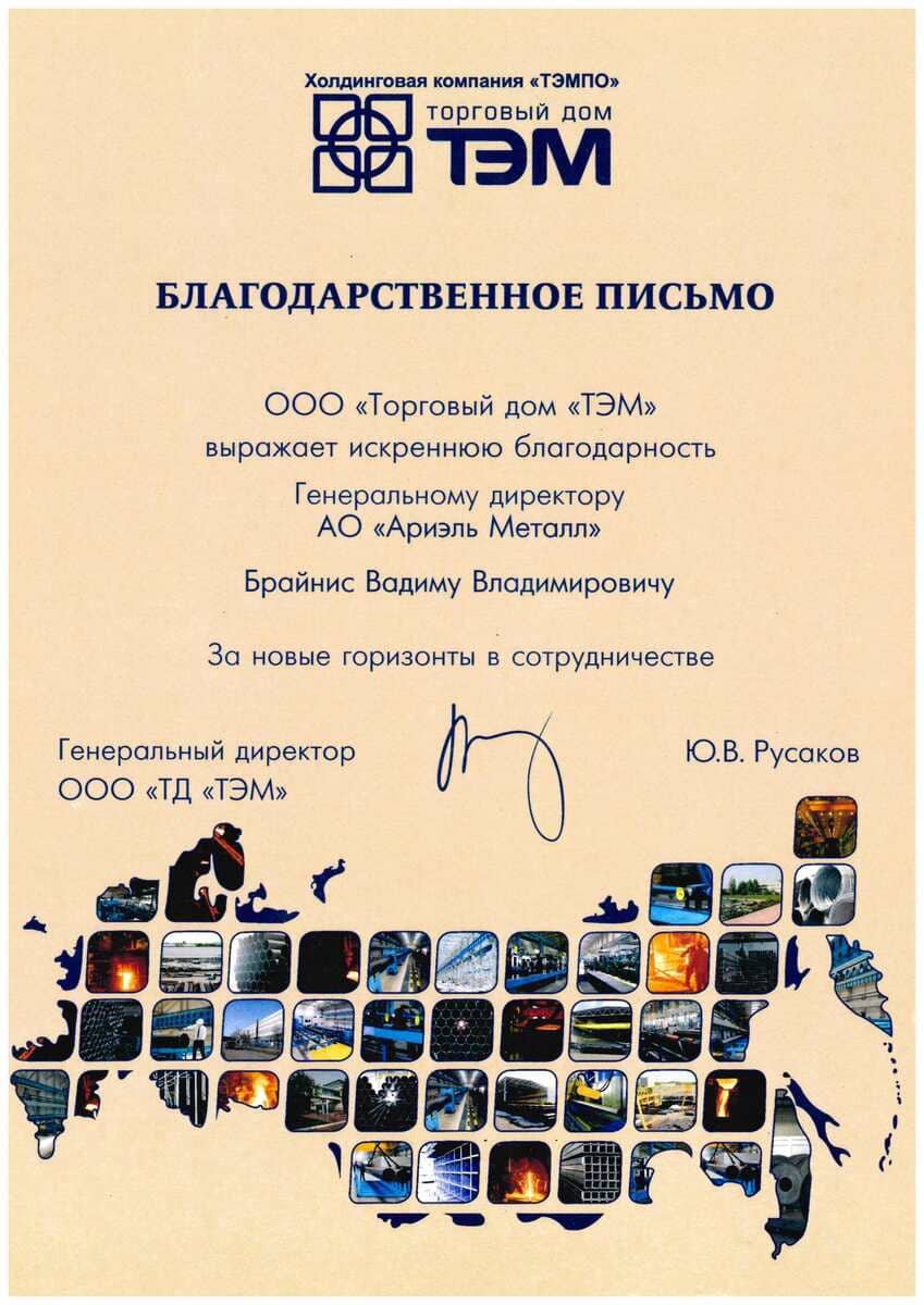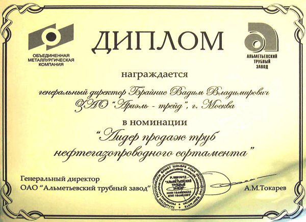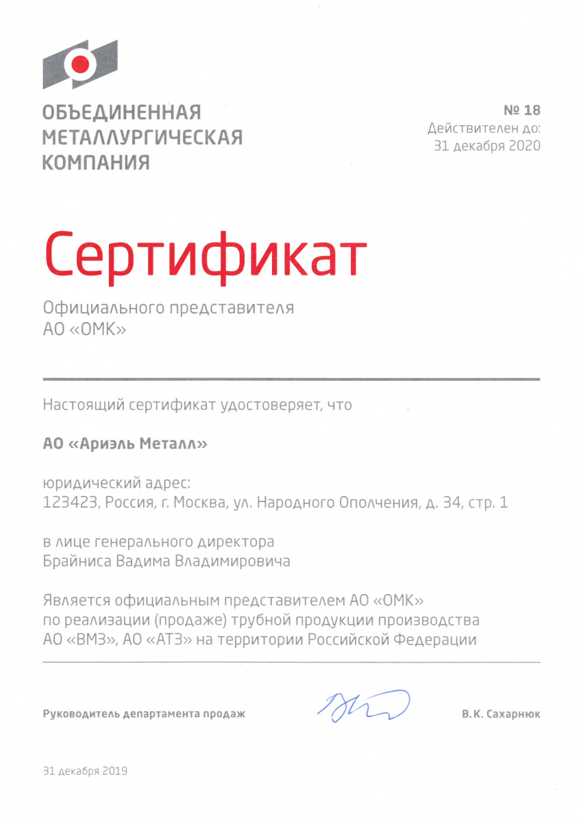 ОАО «Ариэль Металл» является региональным представителем ЗАО «ТОРГОВЫЙ ДОМ „ТМК“ в Московской области