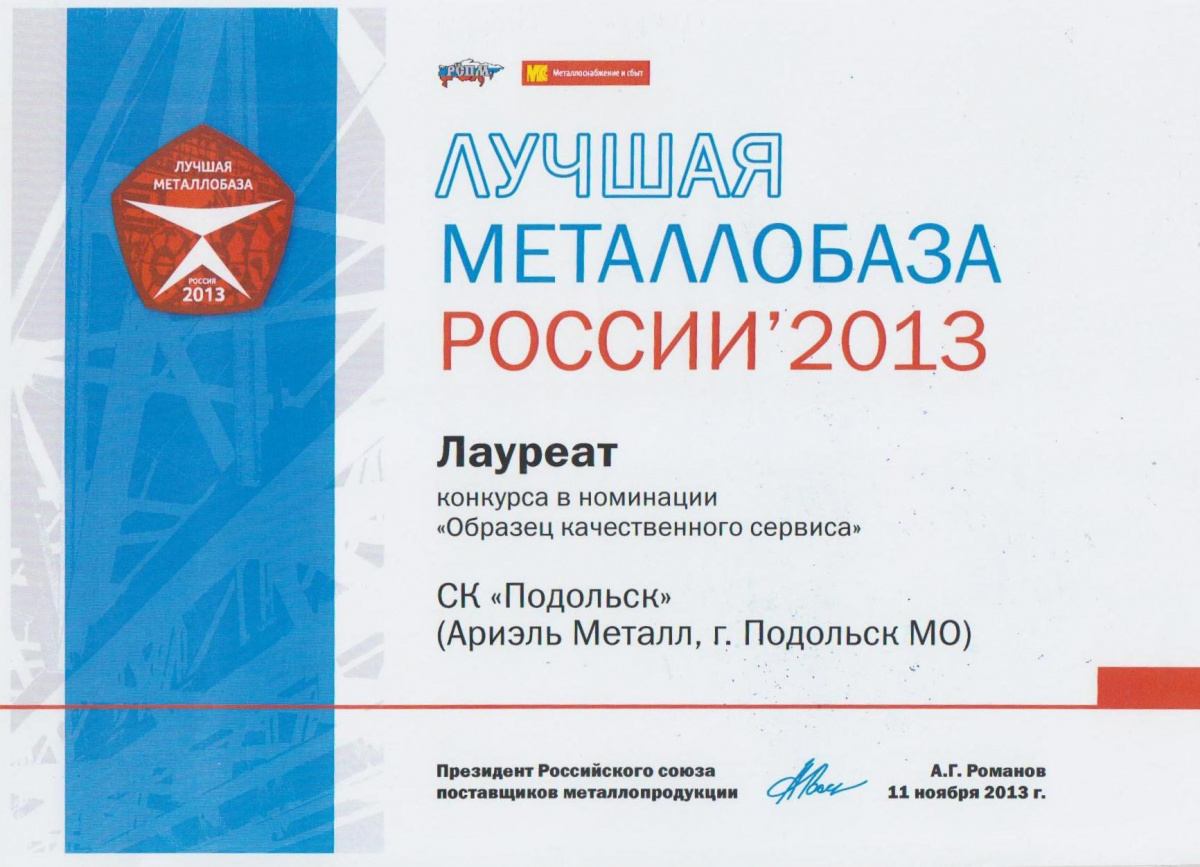 Лучшая металлобаза России’2011 «За инновации в логистике» СК «Подольск» 14 ноября, Москва