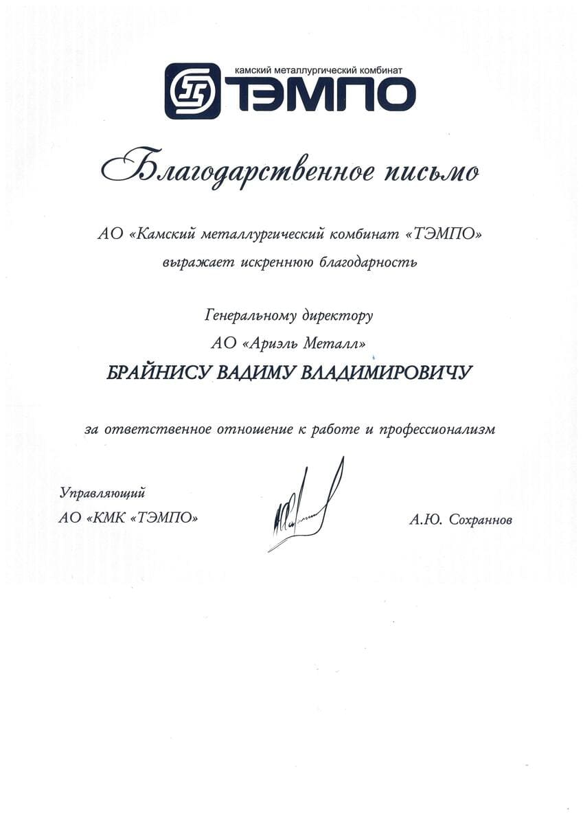 ОАО «Ариэль Металл» является стратегическим партненром ОАО «Уральский трубный завод» в 2014 году