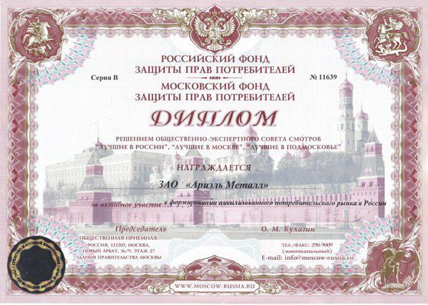 За участие в формировании цивилизованного потребительского рынка в России, Российский и Московский фонды защиты прав потребителей